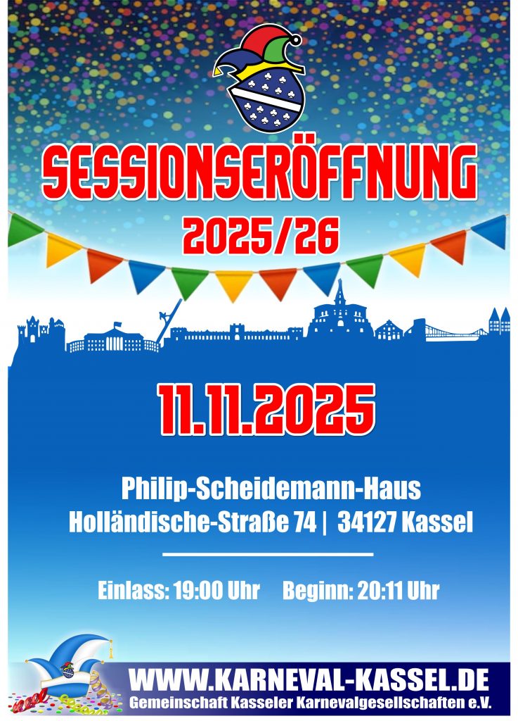 Die Gemeinschaft Kasseler Karnevalgesellschaften (GKK) beginnt am 11.11.25 den Kasseler Karneval. Am Abend erfolgt bereits der erste Höhepunkt. Das Kasseler Prinzenpaar eröffnet die Session und wird in ihr Amt eingeführt, bzw. in diesem Jahr für eine zweite Session verlängert. Dann zeigen bei der Eröffnungsveranstaltung alle Vereine ihre neuen Tänze, Showdarbietungen und sind die neuen Reden der Büttenrednerinnen und Büttenredner zu hören. Beginn ist um 20.00 Uhr im Saal des Phillip-Scheidemann-Haus (Holländische Straße 74, 34127 Kassel). „Damit nimmt das Narrenschiff Fahrt auf“, so Lars Reiße, Präsident der Gemeinschaft Kasseler Karnevalsgesellschaften. Der Eintritt ist frei.