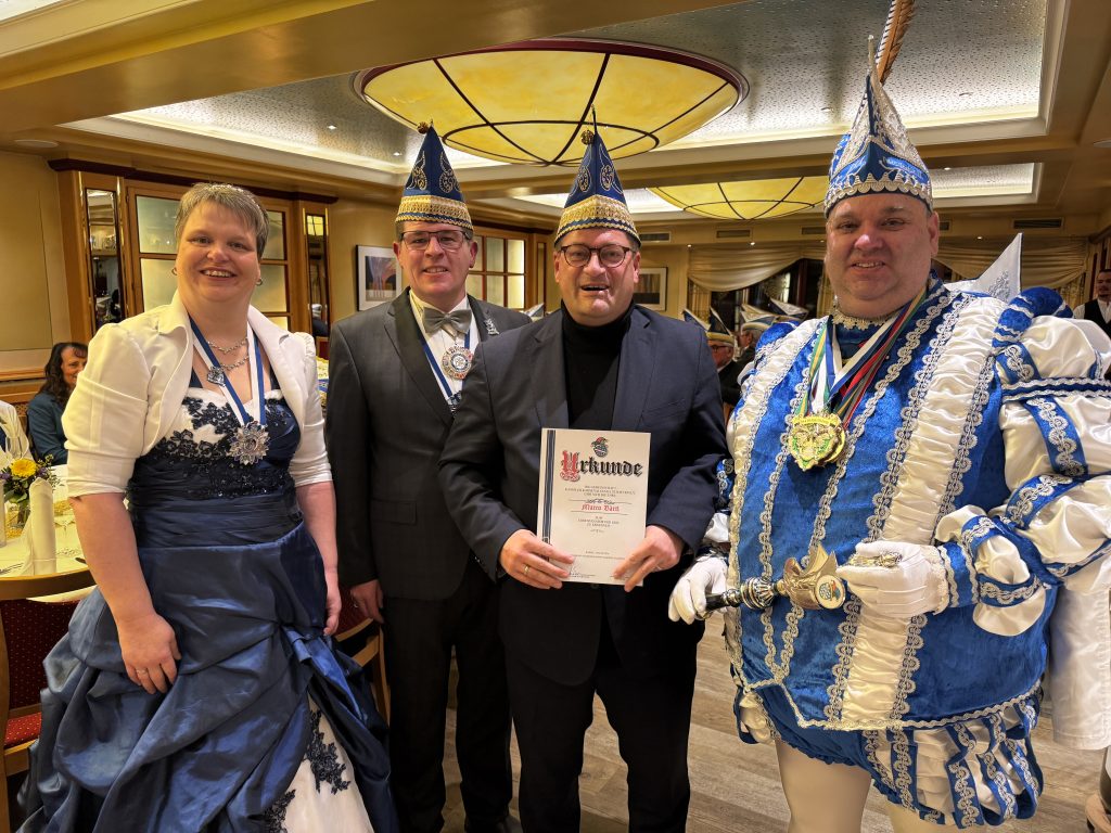 Beim Ordensfest des Ehrensenates der Gemeinschaft Kasseler Karnevalgesellschaften (GKK) wurden zwei neue Ehrensenatoren ernannt. Polizeipräsident Marco Bärtl und Carsten Harkner (Vorsitzender der Geschäftsführung „Kasseler Verkehrs- und Versorgungs-GmbH“) sind jetzt Mitglieder dieses Förderkreises. Der hat sich u.a. die Brauchtumspflege sowie die finanzielle und ideelle Unterstützung der ehrenamtlichen Kinder- und Jugendarbeit in den Karnevalgesellschaften auf die Fahnen geschrieben.