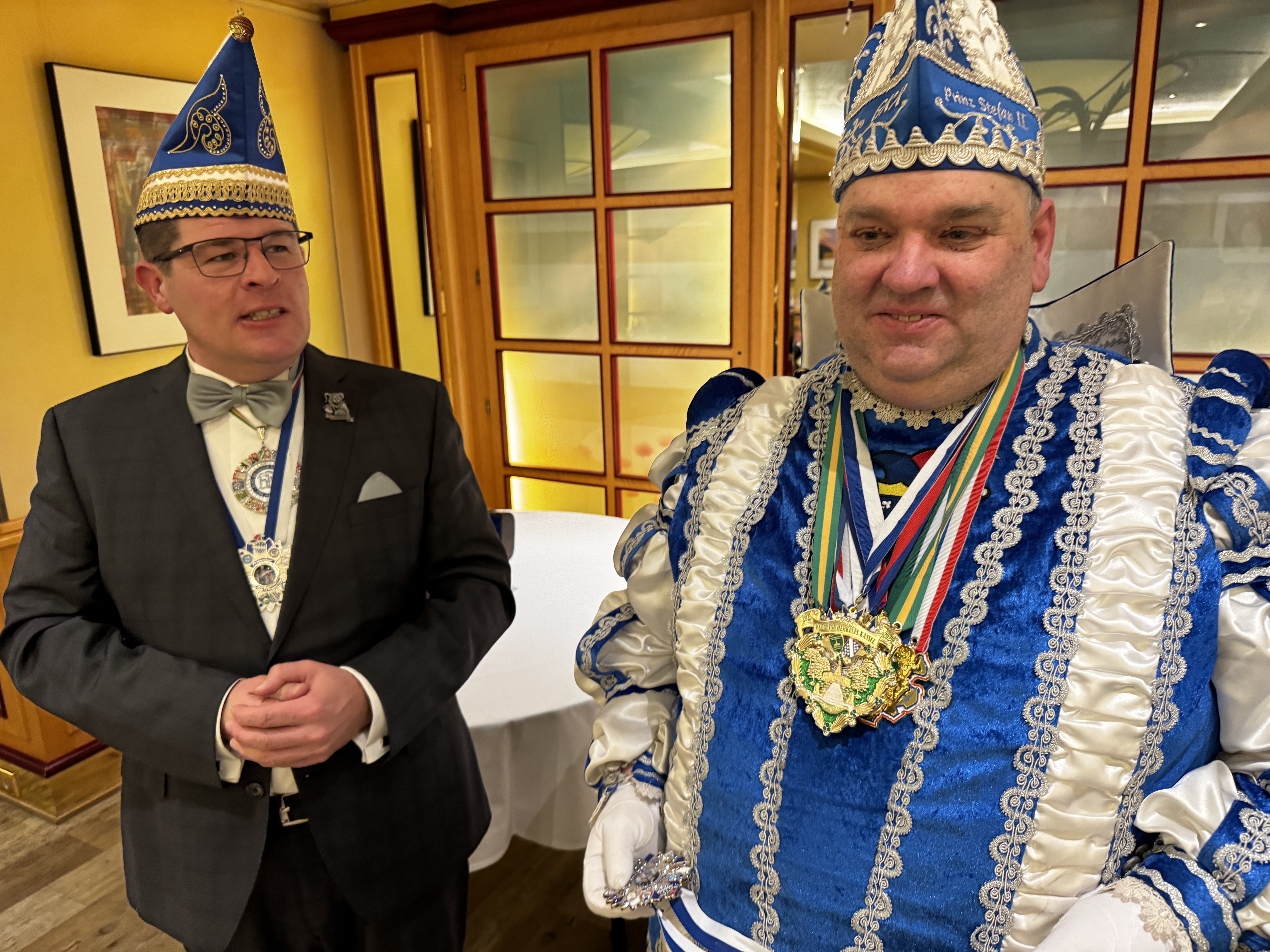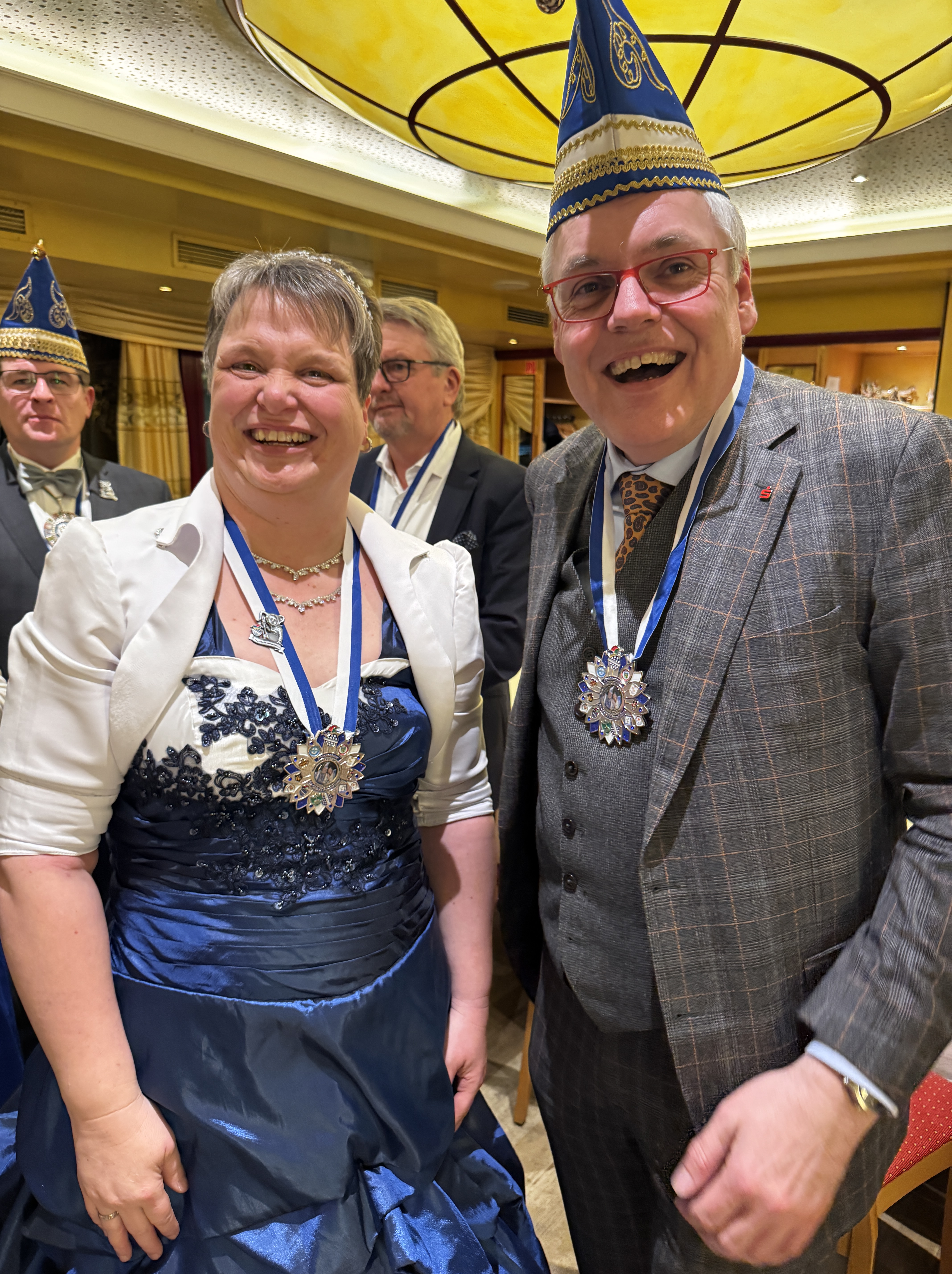 Von den rund 70 Ehrensenatoren waren u.a. Katharina Koch (Landfleischerei Koch), Oliver Kuhn (Kanzlei Finger), Juwelier Werner Siebeneicher, die Landtagsabgeordneten Esther Kalveram und Maximilian Bathon, Regierungspräsident Mark Weinmeister, Ingo Buchholz (Kasseler Sparkasse), Arnd Klein-Zirbes (Hauptgeschäftsführer Industrie- und Handelskammer Kassel-Marburg) und Pfarrer Dirk Stoll dabei. Die Orden wurden vom Kasseler Prinzenpaar Prinz Stefan II. und Prinzessin Yvonne überreicht. Die sammelten auch viele Spenden für die Jugendarbeit der Karnevalisten, für die sei einen „Förderpin“ gestaltet haben.